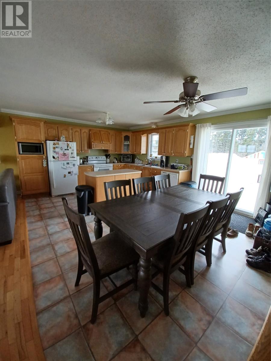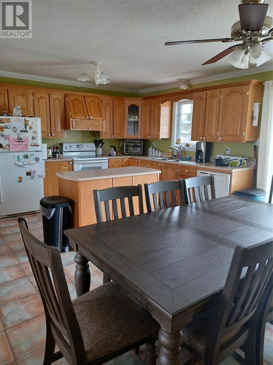 Located on a greenbelt in a quiet neighborhood in Glovertown, this well-maintained and cozy bungalow offers exceptional privacy along with beautiful ocean views from the front deck — the perfect place to relax and watch the boats pass by. The main level features a spacious open-concept design with a large kitchen offering abundant cabinet space, a center island with additional storage, and plenty of prep area for family meals. The dining area includes patio doors leading to a 16 x 20 patio, providing ample space for outdoor entertaining. The bright and spacious living room flows seamlessly within this inviting layout. Two comfortable bedrooms and the main bathroom complete the main floor. The fully developed walkout basement offers even more living space with a rec room, two additional bedrooms, and a laundry area located in the unfinished utility space. There is an outside entrance leading into a mudroom area with a double closet, plus additional storage under the stairs. The backyard is fully paved and maintenance-free, complemented by a colourful wood shed and an impressive double door garage measuring 28 x 38 — ideal for vehicles, recreational toys, or workshop space. A mini-split heat pump along with electric heat provides efficient year-round comfort. Enjoy direct access to ATV trails right from your own backyard — no need to trailer up — and take advantage of being on the doorstep of Terra Nova National Park. You’re just minutes from the beautiful beaches of Eastport and only a short commute to Gander. The local marina offers some of the best boating opportunities on the island, making this property a dream for outdoor enthusiasts. This is your opportunity to live, play, and work in Central’s biggest playground. Book your viewing today! (id:27222)