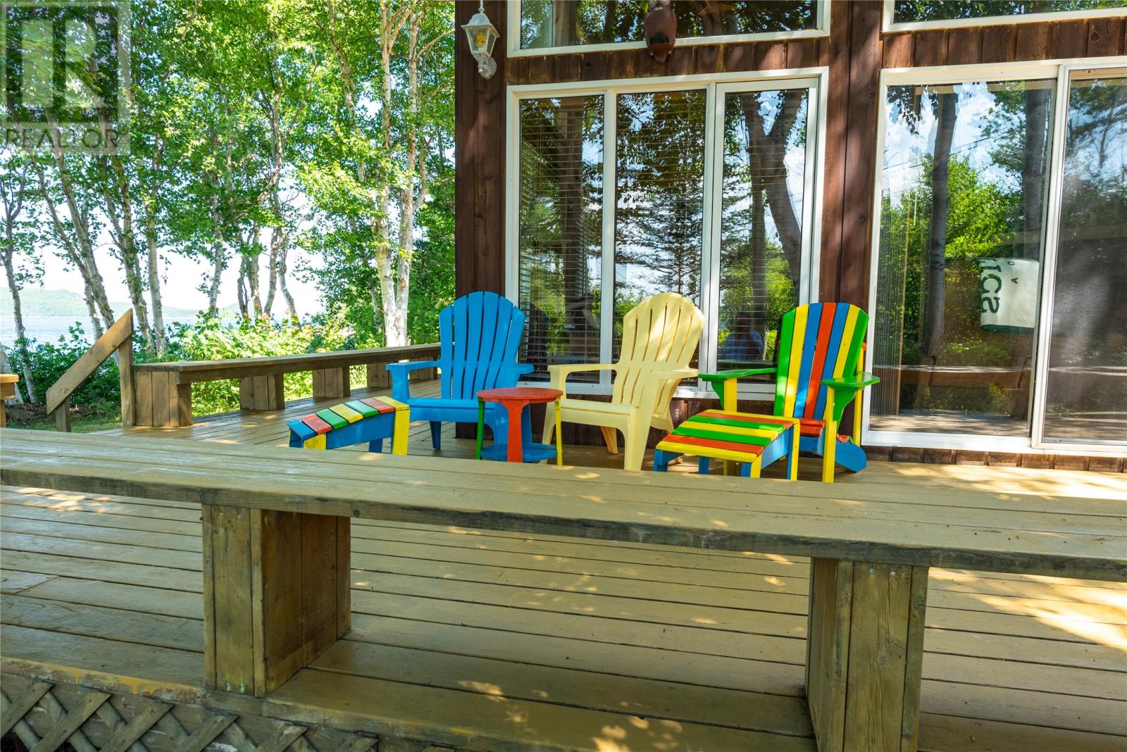 Welcome to this stunning waterfront retreat nestled on nearly 3 acres of land. This property offers the perfect blend of charm, modern comfort, and incredible outdoor living. Whether you're seeking a full-time residence or a seasonal getaway, this home delivers privacy, space, and a true connection to nature. Tucked among mature trees, the home offers exceptional seclusion. A spacious wraparound deck showcases breathtaking views of the bay—perfect for morning coffee or unwinding in the evening. A gently sloping lawn leads to your own private shoreline, with a mix of sandy beach and rocky point—ideal for kayaking, swimming, boating, or relaxing by the firepit. Perfect for outdoor and boating enthusiasts, this property includes two detached garages, one of which houses a John Deere tractor to help launch the floating dock for large boats and yachts. The boathouse, measuring over 30 feet and located near the water’s edge, offers direct access to the bay. A breakwater protects your vessel from rough waves during high winds, ensuring safe storage and peace of mind. There's also a greenhouse, providing space for gardening and self-sufficiency, and more than enough room on the land for future expansion or recreation. Inside, the home features vaulted ceilings, wood finishes, and expansive windows that flood the living space with natural light. The cozy living room includes an airtight wood stove set in a natural rock fireplace, creating a warm, rustic focal point. The main level offers a bright kitchen and dining area, guest bedroom, full bath, and a spacious primary suite with a 4-piece ensuite. Upstairs, a large open loft overlooks the living room and provides extra living space for guests, a home office, or a family room. Located just minutes from Glovertown and breathtaking trails of Terra Nova National Park, this is more than just a property—it’s a lifestyle. If you’re dreaming of peaceful waterfront living with space to roam, this is the perfect place to call home! (id:27222)